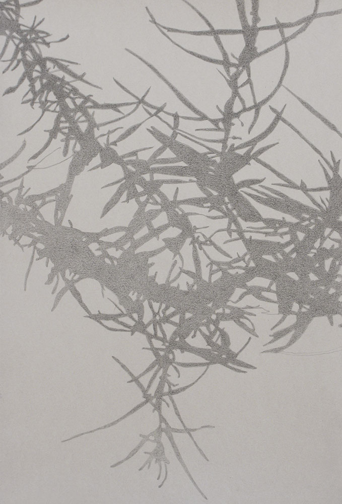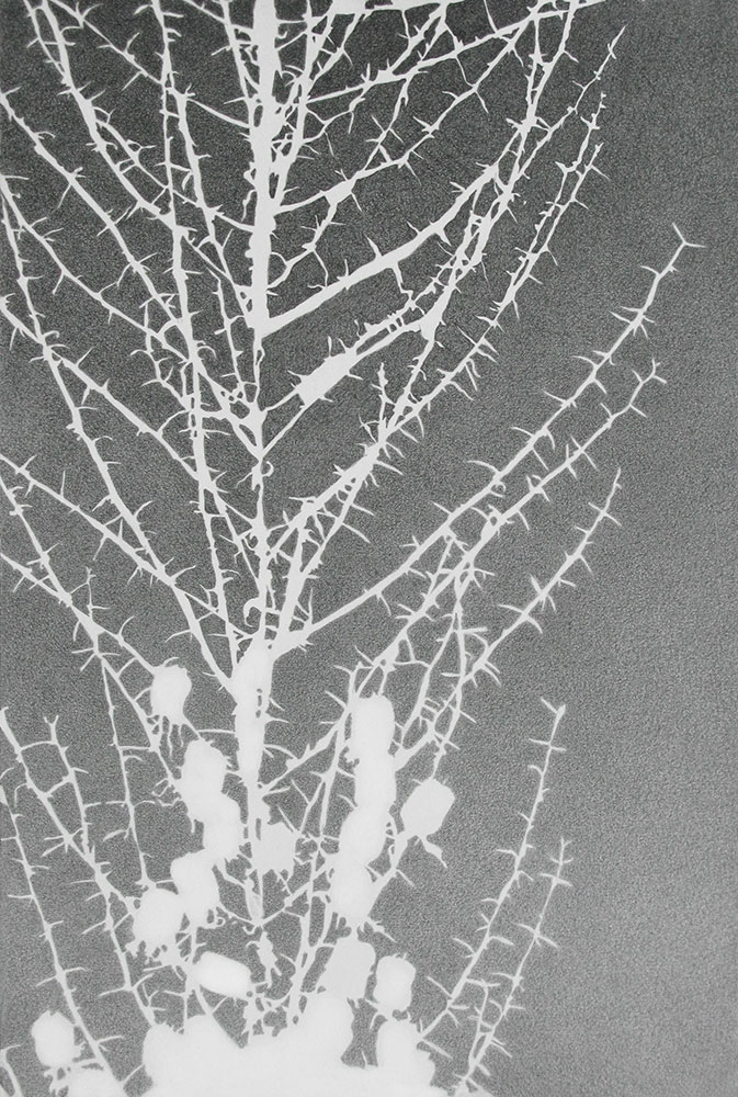 CALIFORNIA FLORA Shadow drawings on grey paper of native plants in the gardens of Theodore Payne Foundation. Produced as the inaugural Artist-in-Residence in 2008. A unique plant group of subtle beauty and structure. Quirky.